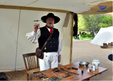 The San Antonio Living History members currently maintain “Living History Encampment” in the Alamo shrine ground giving demonstrations to visitors of how people lived and fought during those days.